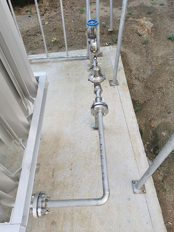 采用集中供气的供应模式,新建二氧化碳气站,汽化器后端加装电加热系统,车间内布置食品级的不锈钢管路,储罐安装远程监控系统,供货槽车每次送货前出具食品级的出厂检测报告。